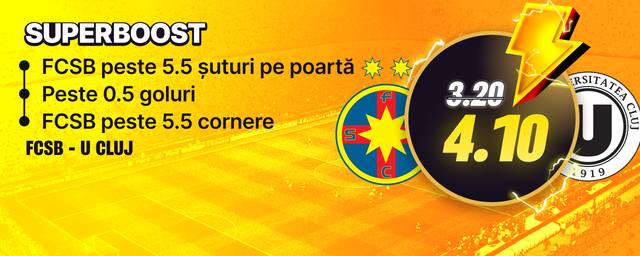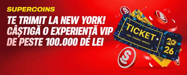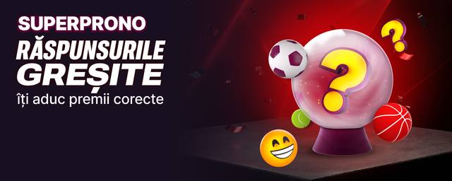 Poți participa și la SuperProno, concursul nostru gratuit de pronosticuri pe cele mai tari meciuri, cu un fond de premiere de 300.000 lei, sau poți învârti la SuperSpin, roata norocului care îți poate aduce zilnic un premiu.