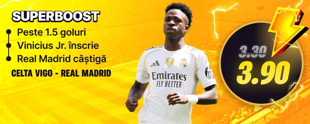 Poți participa și la SuperProno, concursul nostru gratuit de pronosticuri pe cele mai tari meciuri, cu un fond de premiere de 300.000 lei, sau poți învârti roata SuperSpin pentru șansa de a câștiga premii zilnic.