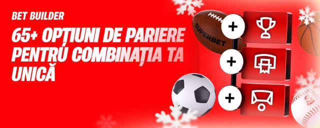 Numele Superbet a ajuns sus, primul în top, și a făcut-o oferind o experiență totală: de la sute de opțiuni de pariere pentru zeci de sporturi, la posibilitatea de a urmări meciurile în direct pe site-ul și în aplicația noastră, la opțiunea cash out și la alte beneficii de care se bucură, zilnic, sute de mii de fani ai sportului!