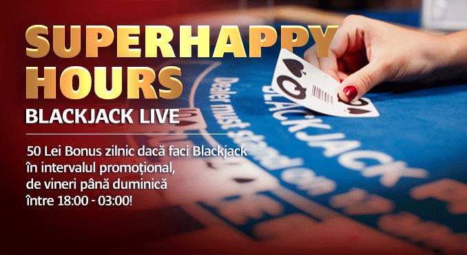 2. Primești 50 Lei bonus Live Casino pentru fiecare zi în care faci Blackjack în intervalul promoțional, în perioada 12 iulie - 15 iulie (promoția se încheie pe 15 iulie la ora 03:00).