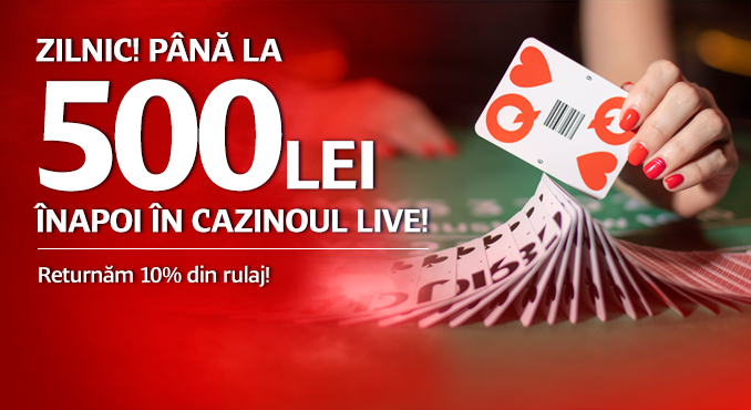 Poți primi înapoi sute de Lei din rulajul tău în Cazinoul Live, indiferent de câștiguri sau eventualele pierderi! Distrează-te și profită!