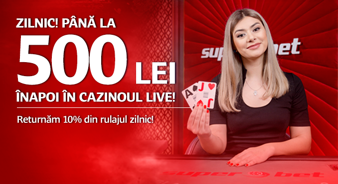 Poți primi înapoi sute de Lei din rulajul tău în Cazinoul Live, indiferent de câștiguri sau eventualele pierderi! Joacă relaxat!
