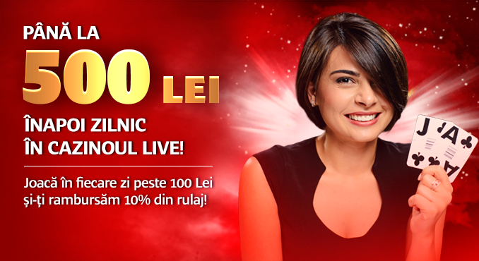 Poți primi înapoi sute de Lei din rulajul tău în Cazinoul Live, indiferent de câștiguri sau eventualele pierderi! Distrează-te și profită!