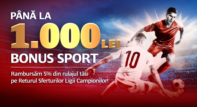 Pariază minim 1.500 lei în zilele returului sferturilor Ligii Campionilor și poți beneficia un bonus de până la 1.000 Lei