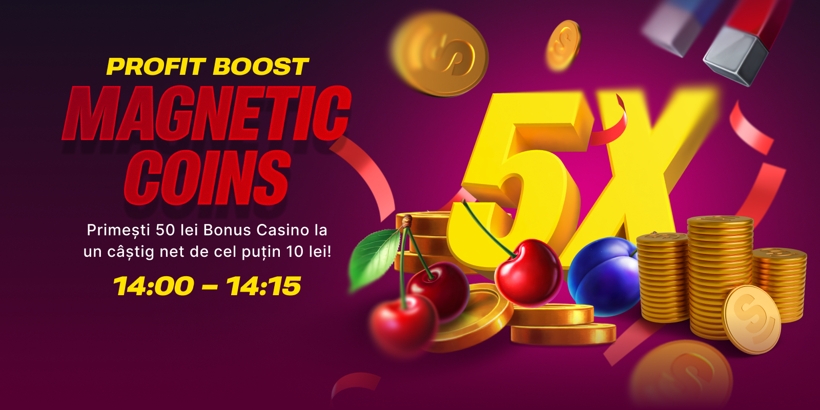 Profit Boost x5 la Magnetic Coins: 50 lei Bonus Casino cu rulaj x1